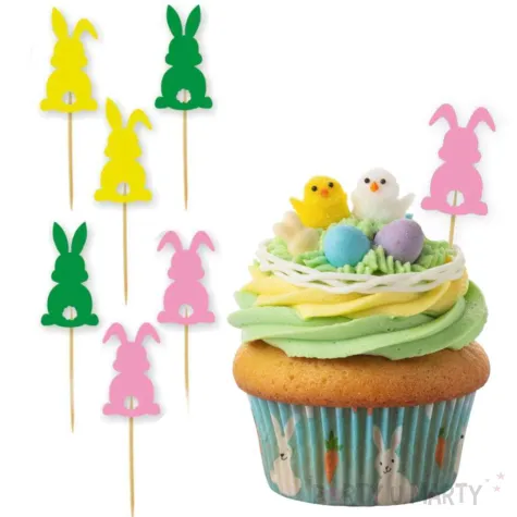 Dekoracje do muffinek, babeczek, święconki na Wielkanoc - pikery "Kolorowe zajączki", 6 szt