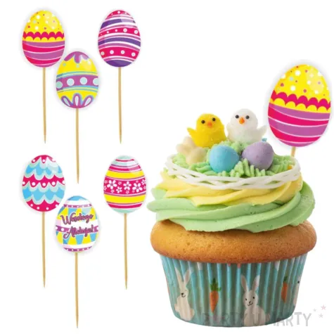Dekoracje do muffinek, babeczek, święconki na Wielkanoc "Pikery kolorowe pisanki", jajka, x6